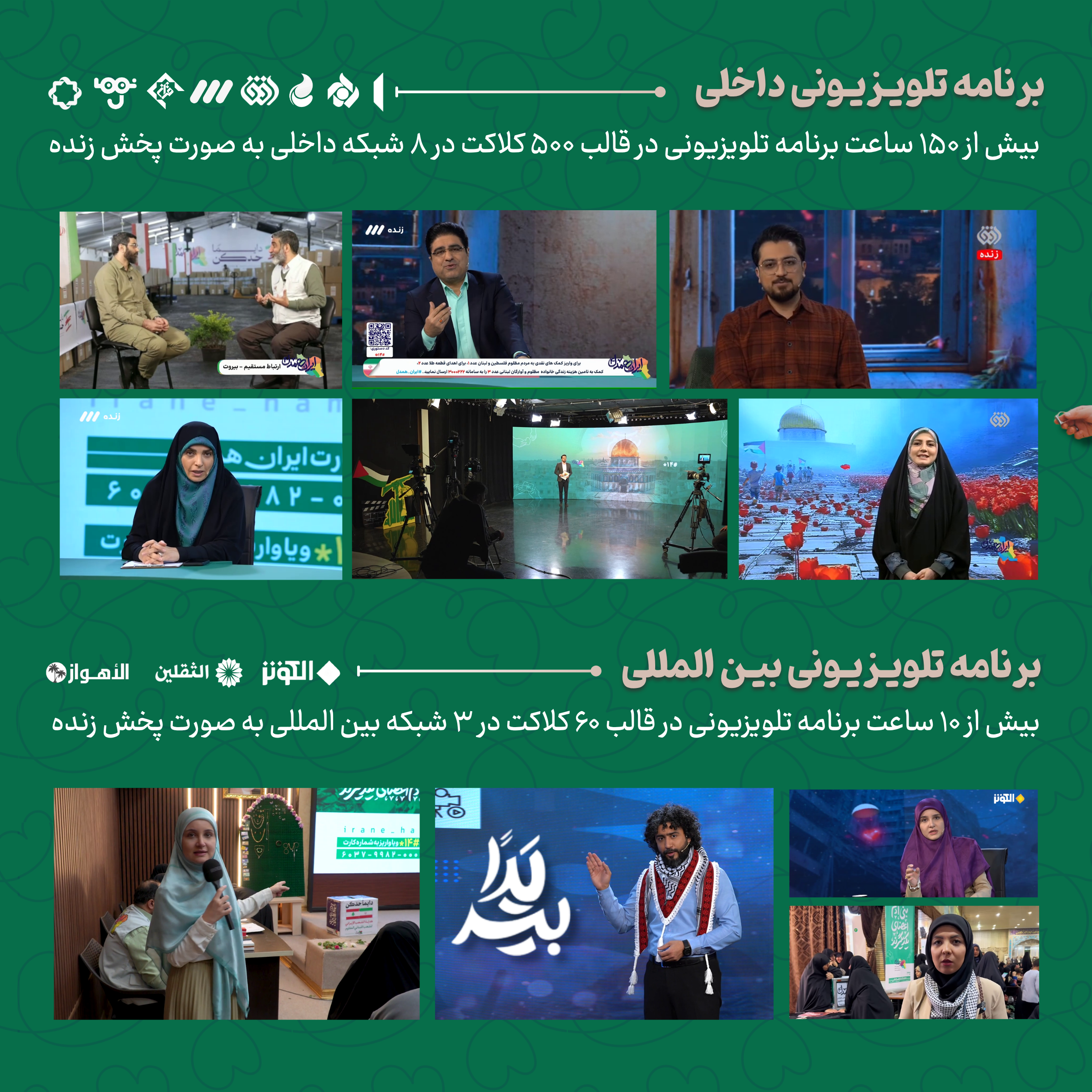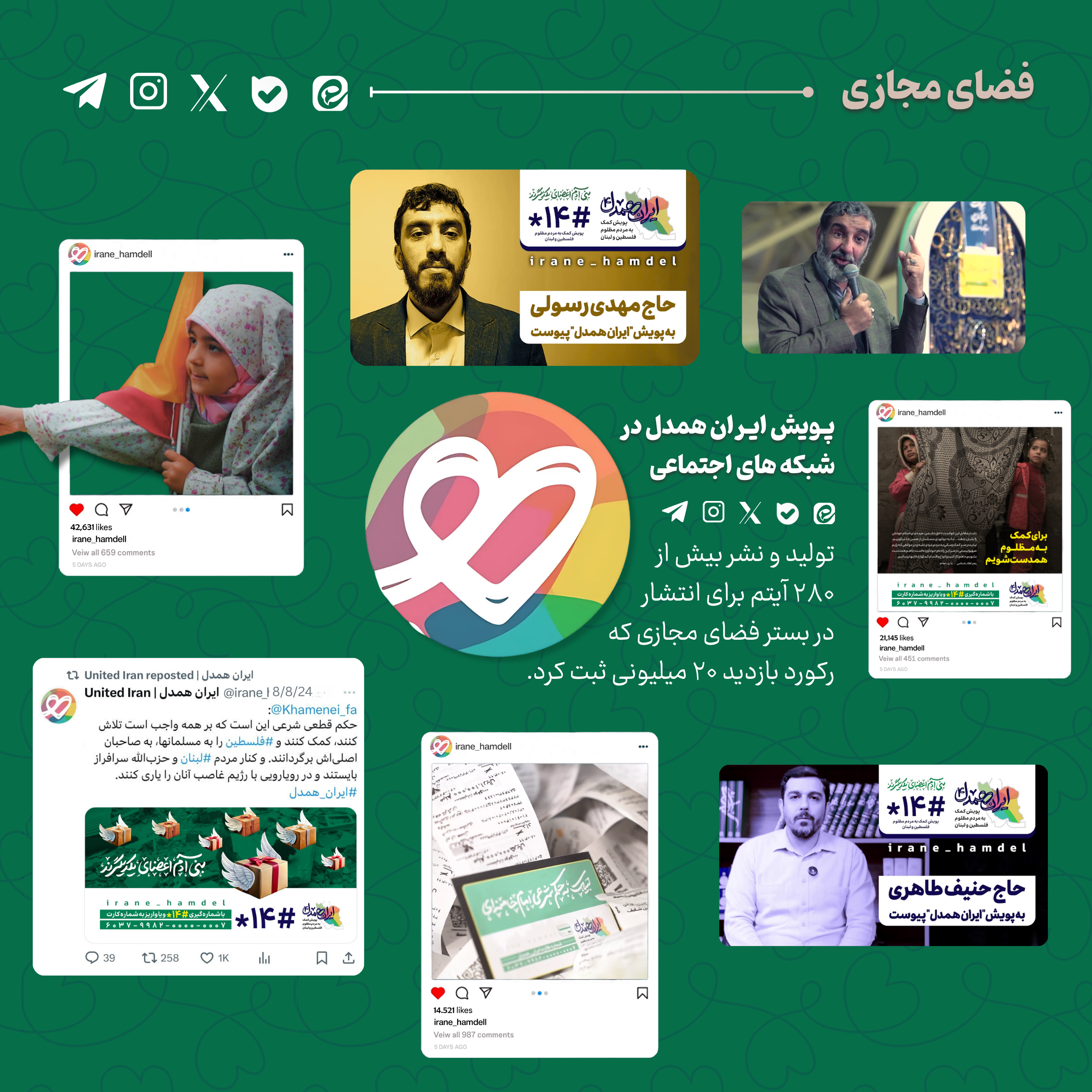 پویش ایران همدل 4 با هدف کمک رسانی به مردم مظلوم فلسطین و لبنان در قالب 400 کلاکت از 6 شبکه سراسری برای جمع آوری کمک های مادی و معنوی مردم ایران پخش شد.